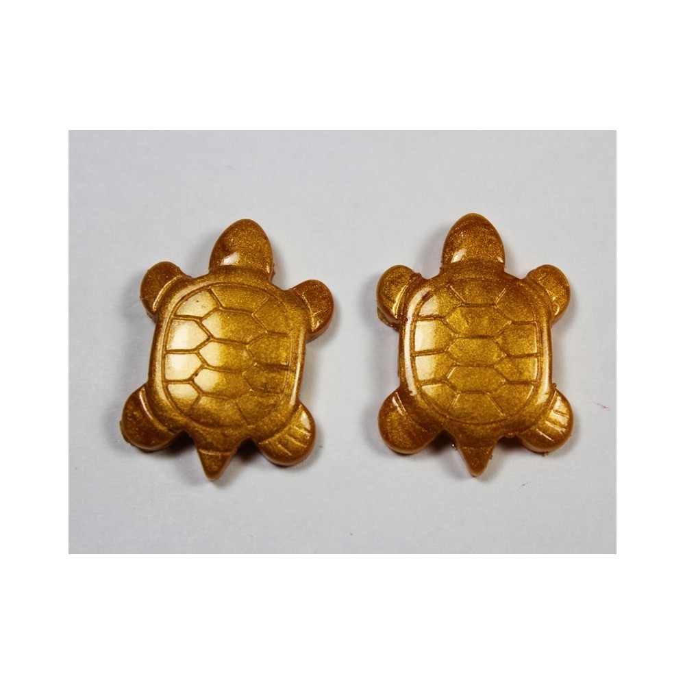 2pc Pearl Gold Turtle Resin Flatback Cabochon 27x20mm