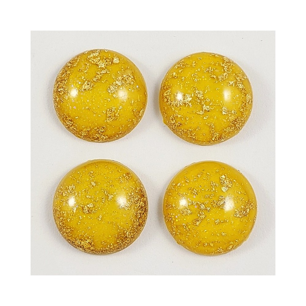 10pc - Gold Foil Resin Cabochon Flatback Embellishments 18mm round - Lemon Drop