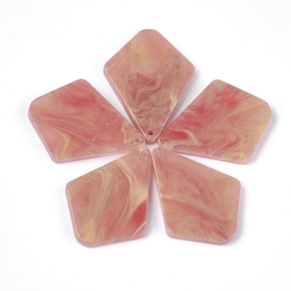 2pc 25x19mm Resin Cabochon Flatback Pendants, Kite Shape - Salmon