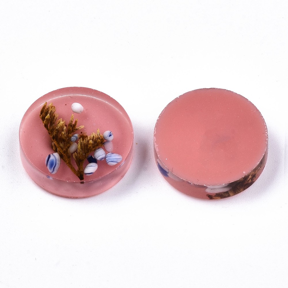 2pc Real Dried Flower and Seeds Epoxy Resin Pink 20mm Round Flatback Cabochon