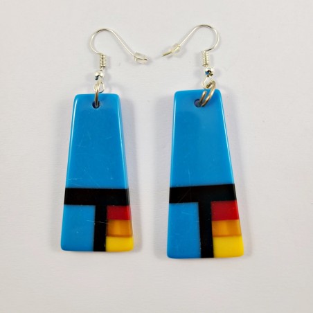 Native Slab Earring Pair Inlay Handmade Yellow Trapezoid