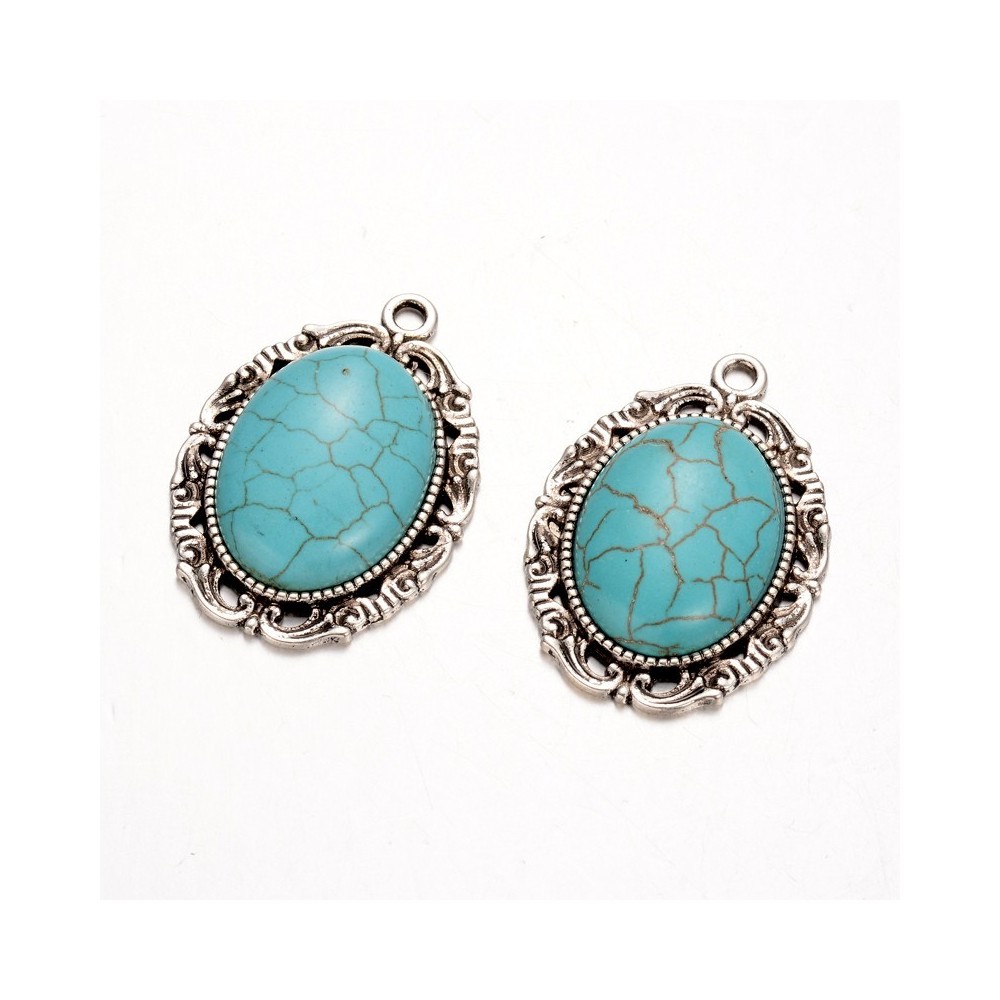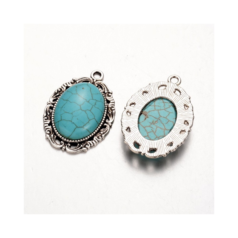 Put the perfect finishing touch to your western style wardrobe with this unique and beautiful pendant! Crafted from antique silver metal alloy with a dazzling synthetic turquoise in the center, this pendant will have you feeling like a true cowgirl or cowboy. Its compact size makes it easy to fit on any necklace, and the hole is 2.5 mm for a secure fit. Make your outfit stand out from the crowd with this western-inspired pendant!