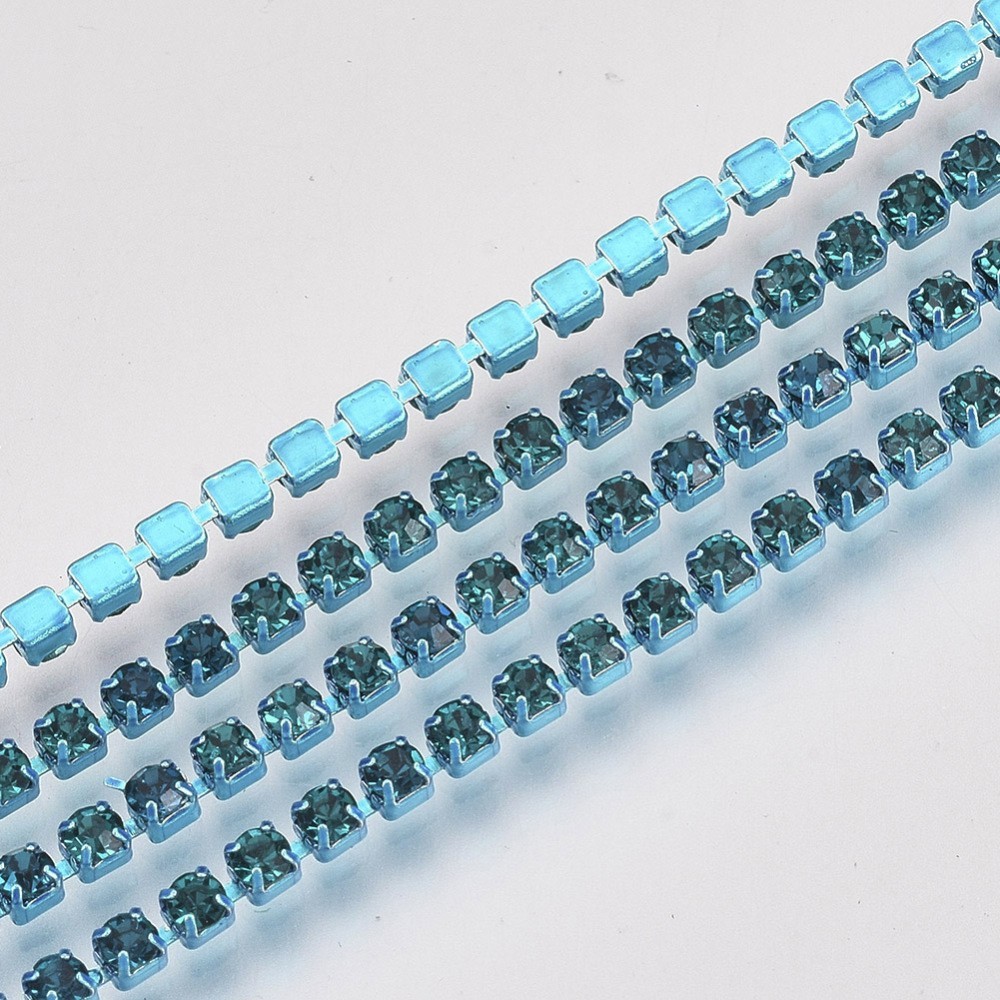 SS6 Silver Metal Chain with AB Crystal Glass Stone -1 Yd