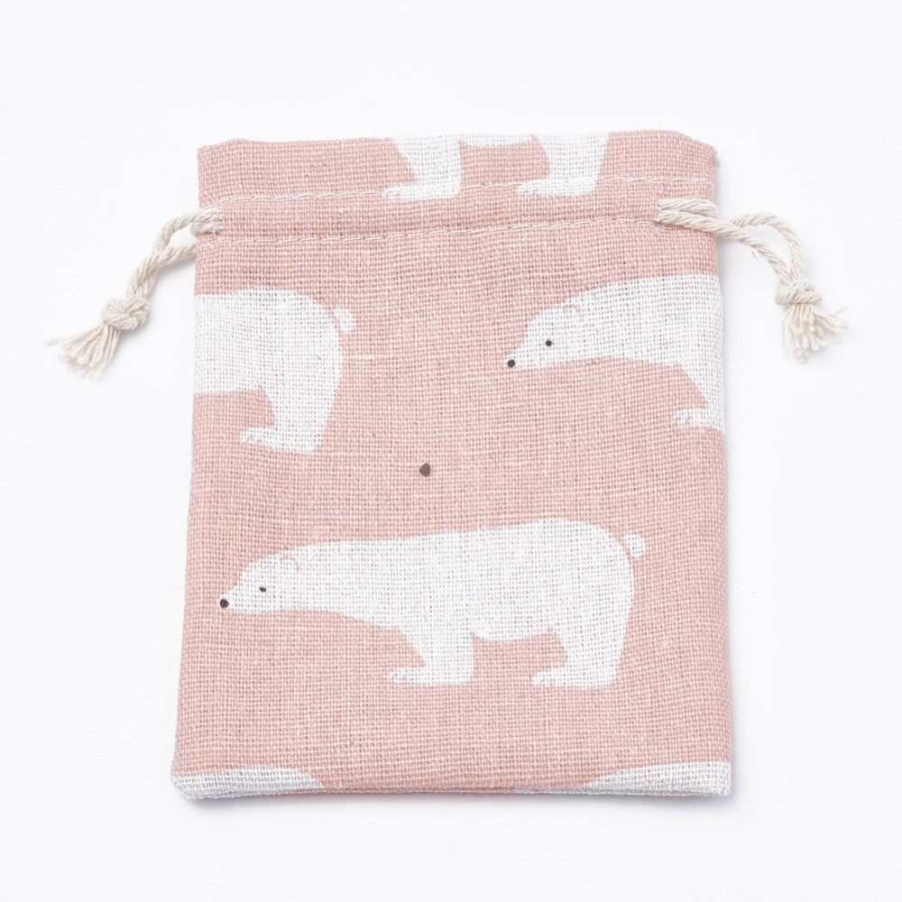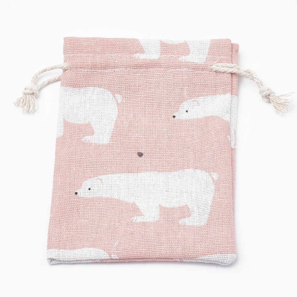 Polycotton(Polyester Cotton) Packing Pouches Drawstring Bags, with Printed Polar Bear, Salmon